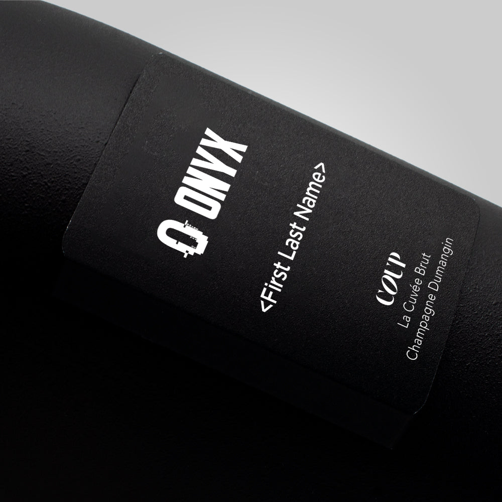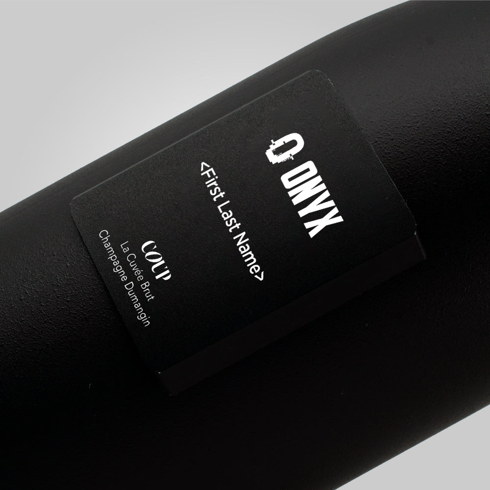 Laser-engraved black metal label. Hand painted matte black bottle.