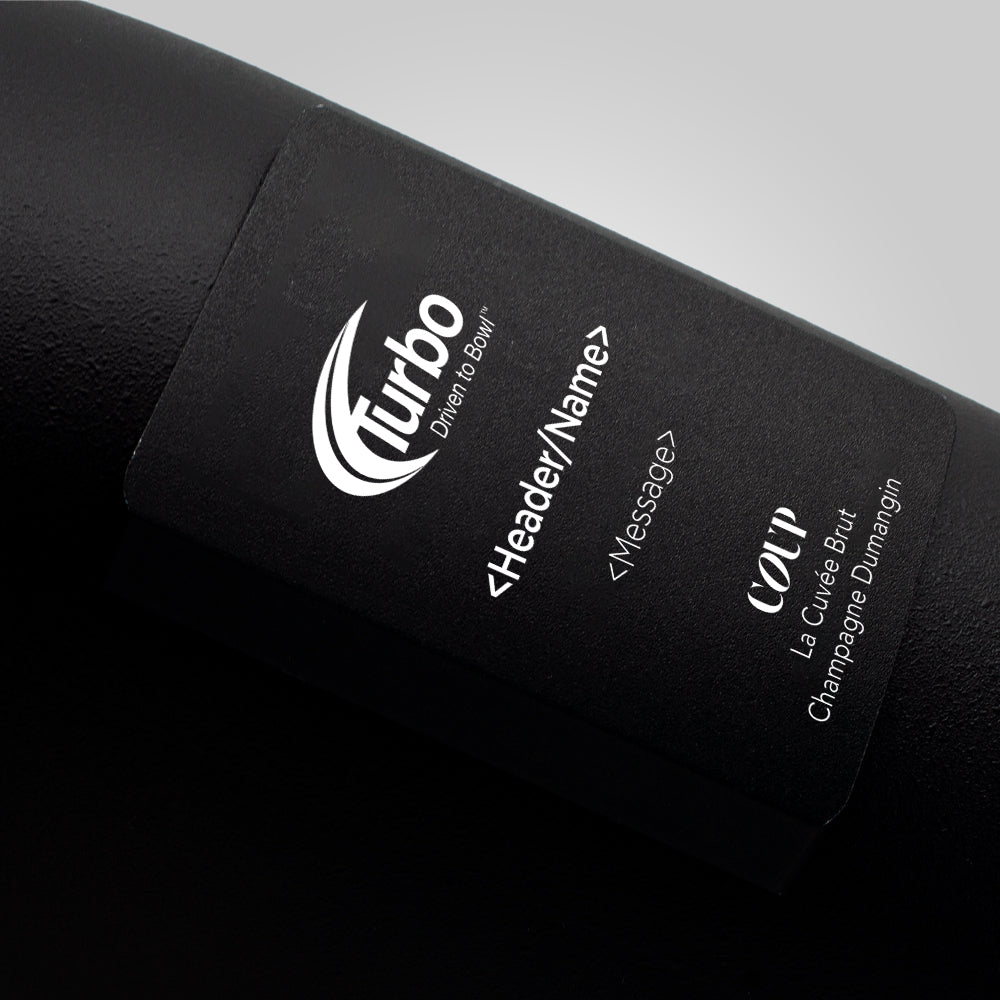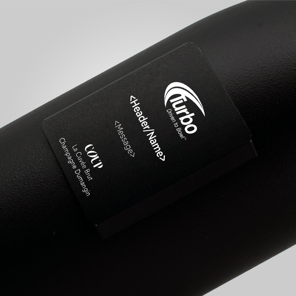 Laser-engraved black metal label. Hand painted matte black bottle.