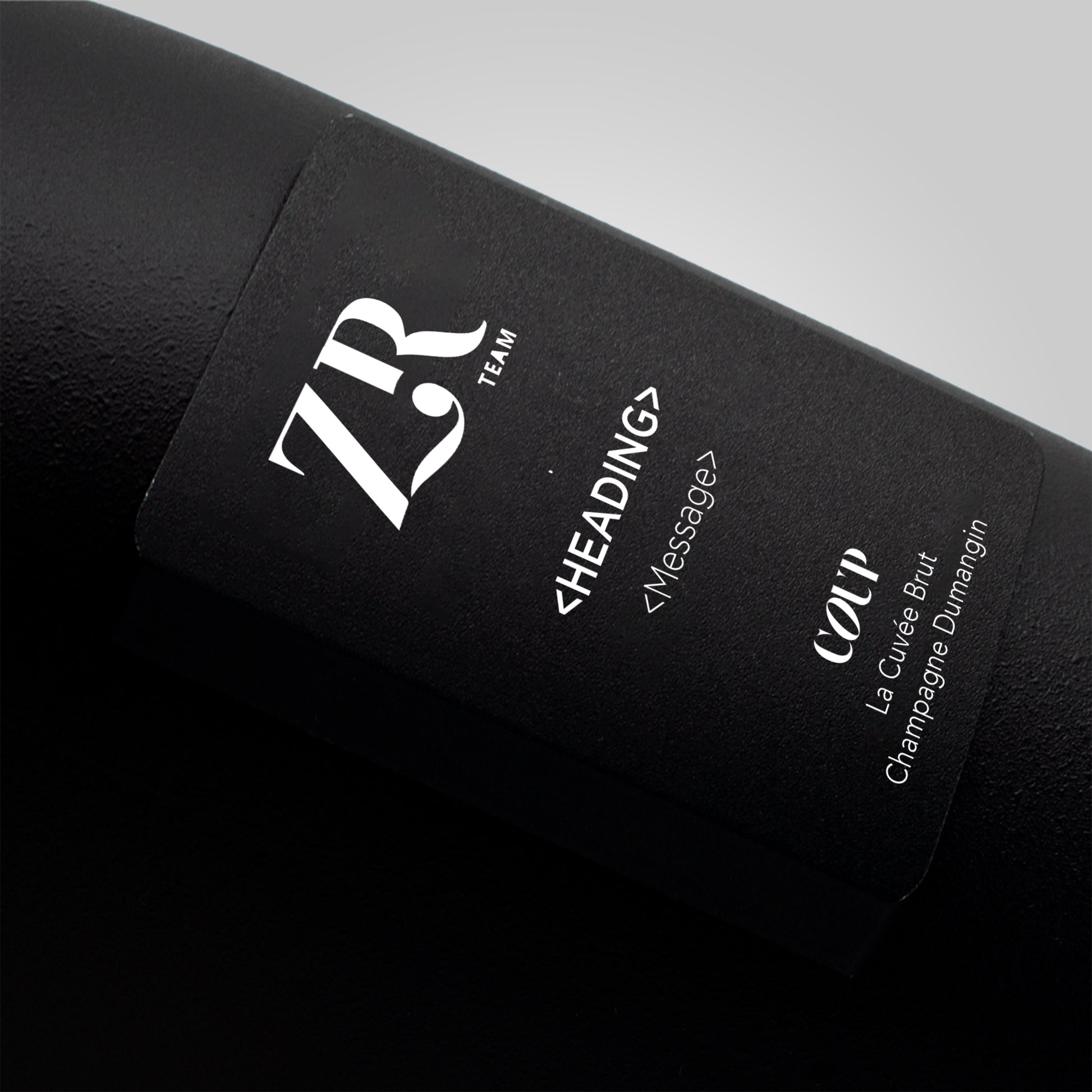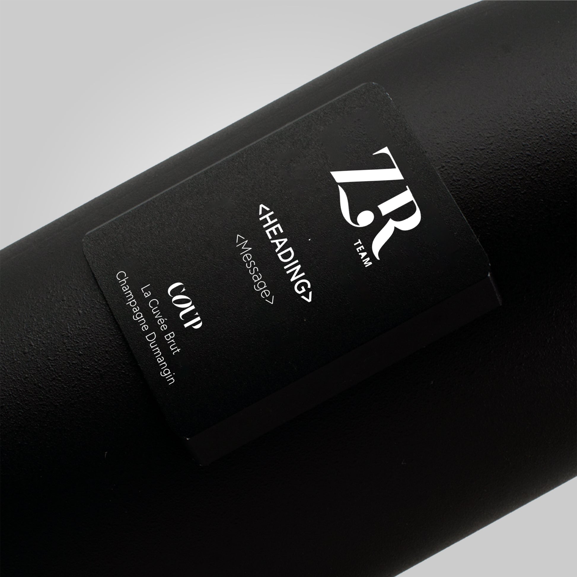 Laser-engraved black metal label. Hand painted matte black bottle.