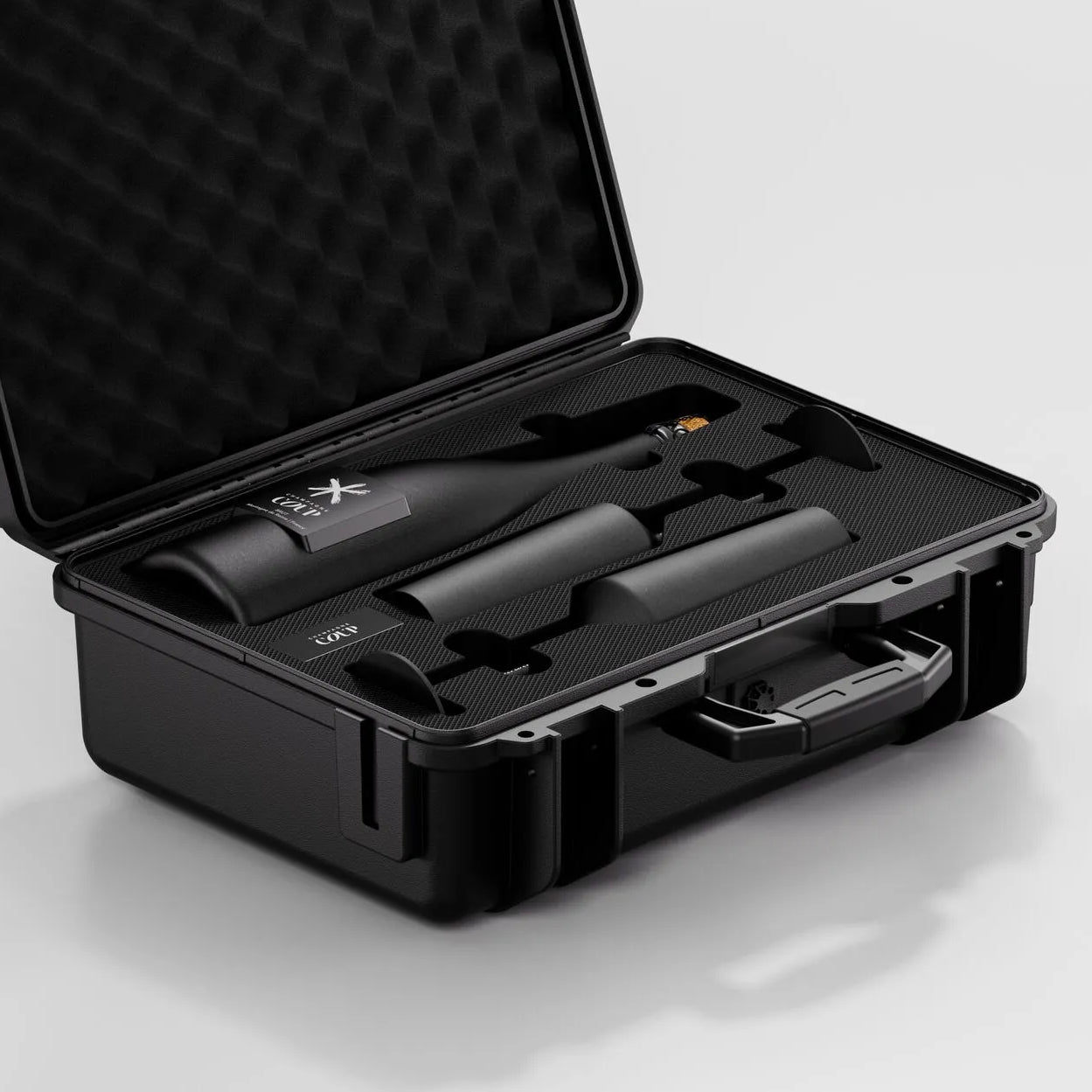 - Travel & storage case to conveniently carry and display COUP Champagne