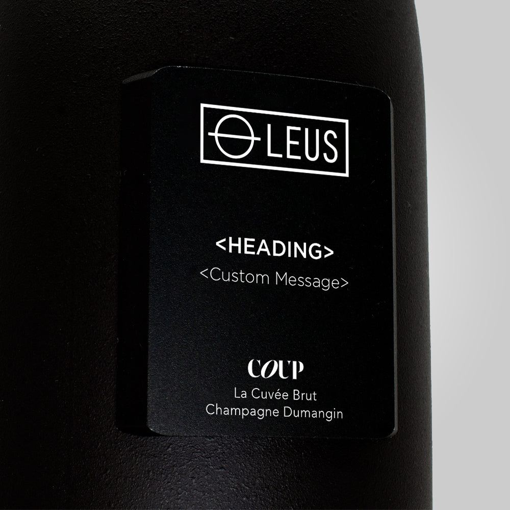 Laser-engraved black metal label. Hand painted matte black bottle.