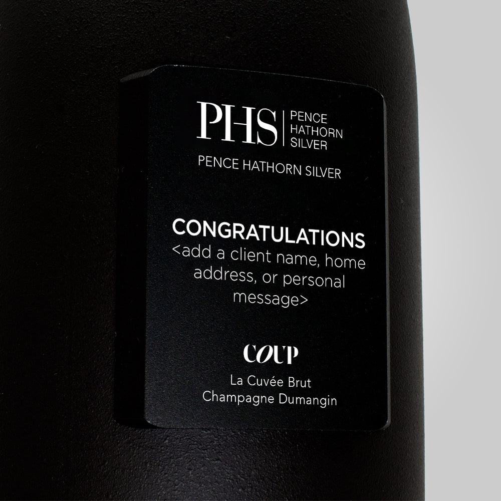 Send any custom graphics and copy to concierge@coupchampagne.com. Ships 3-5 days after artwork approval.
