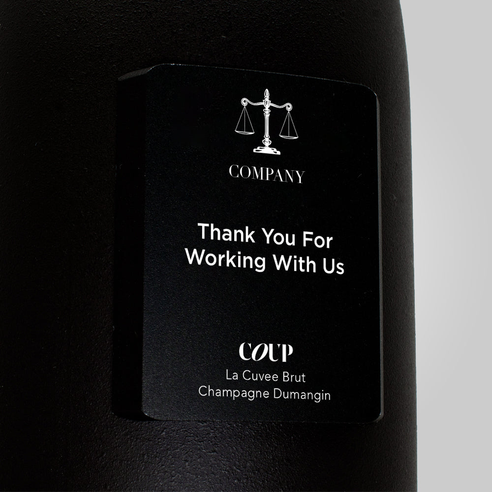 Laser-engraved black metal label. Hand painted matte black bottle.