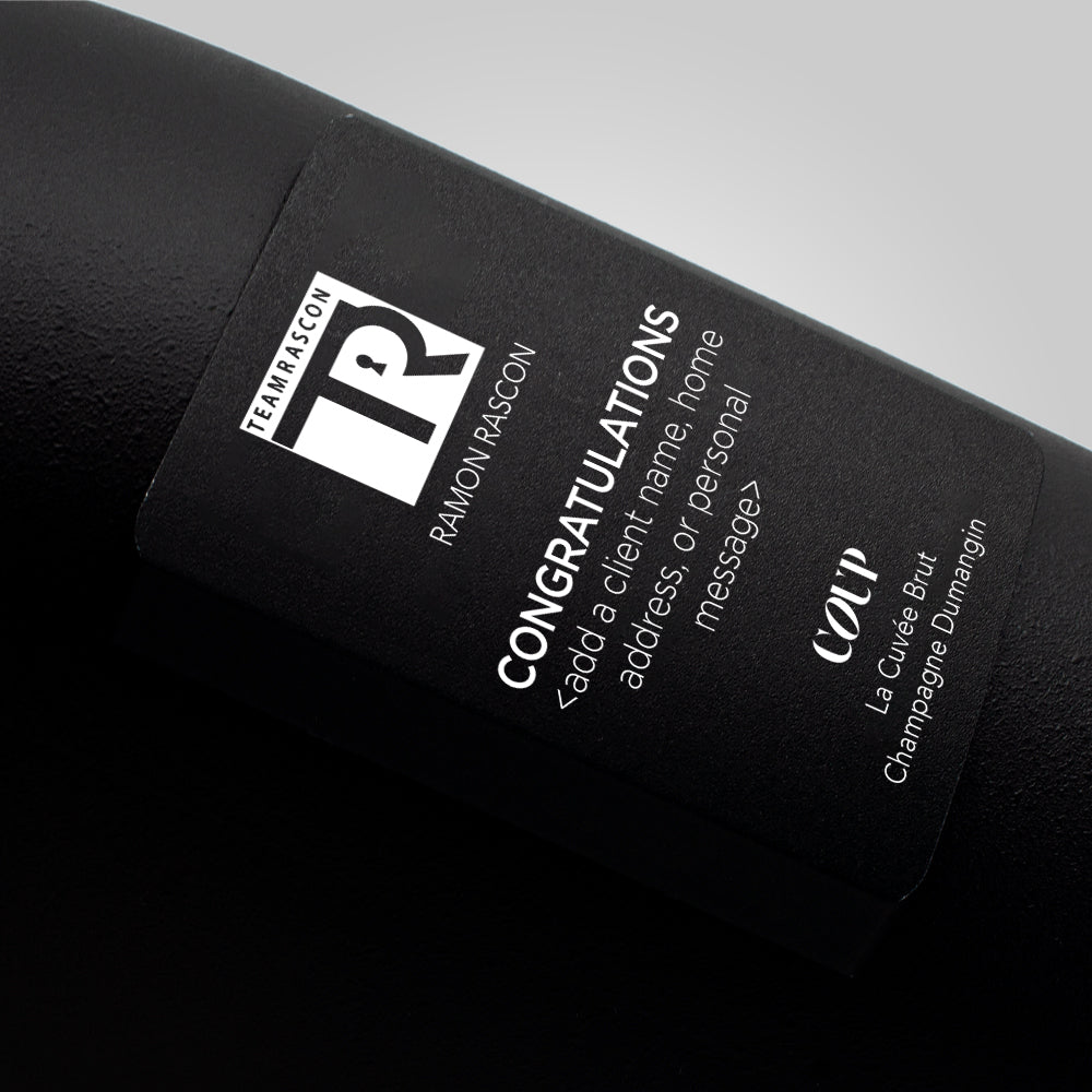 Send any custom graphics and copy to concierge@coupchampagne.com. Ships 3-5 days after artwork approval.