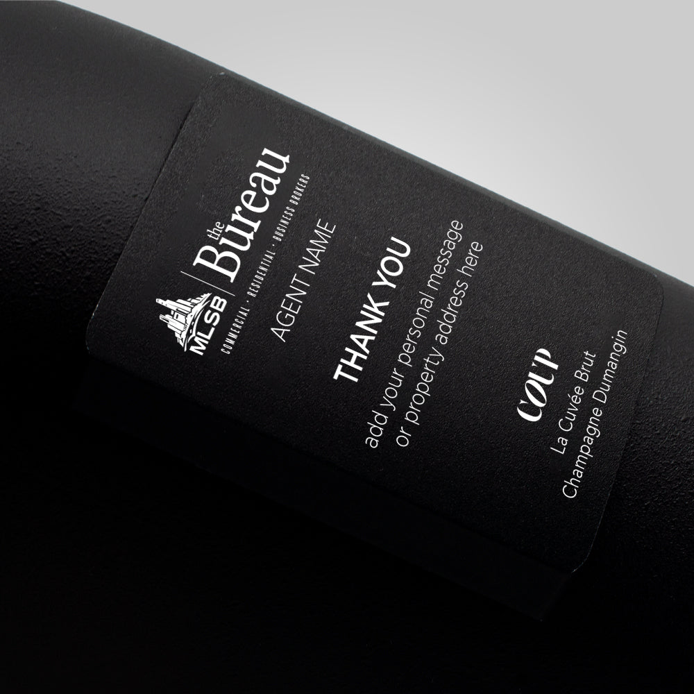 Laser-engraved black metal label. Hand painted matte black bottle.