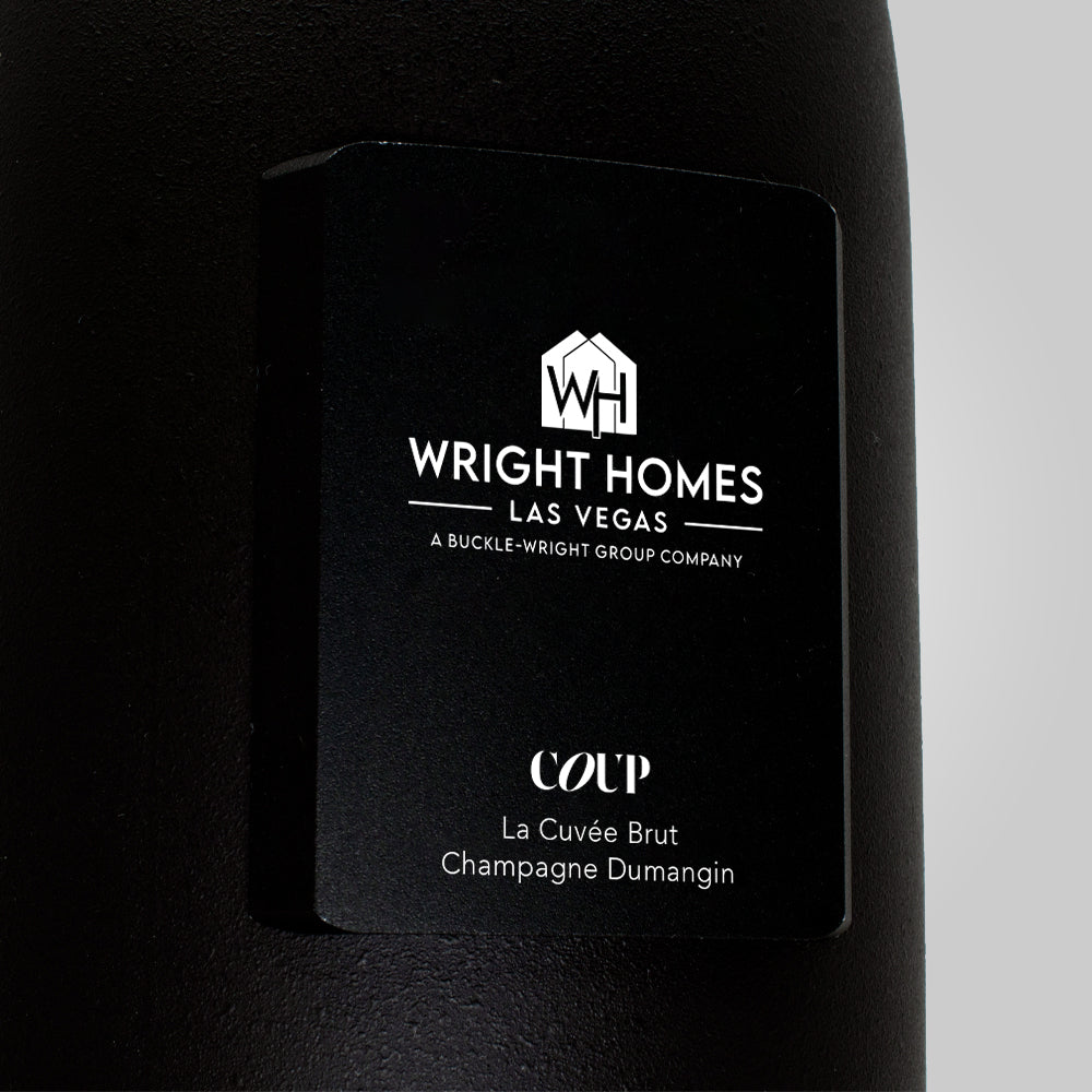 Laser-engraved black metal label. Hand painted matte black bottle.