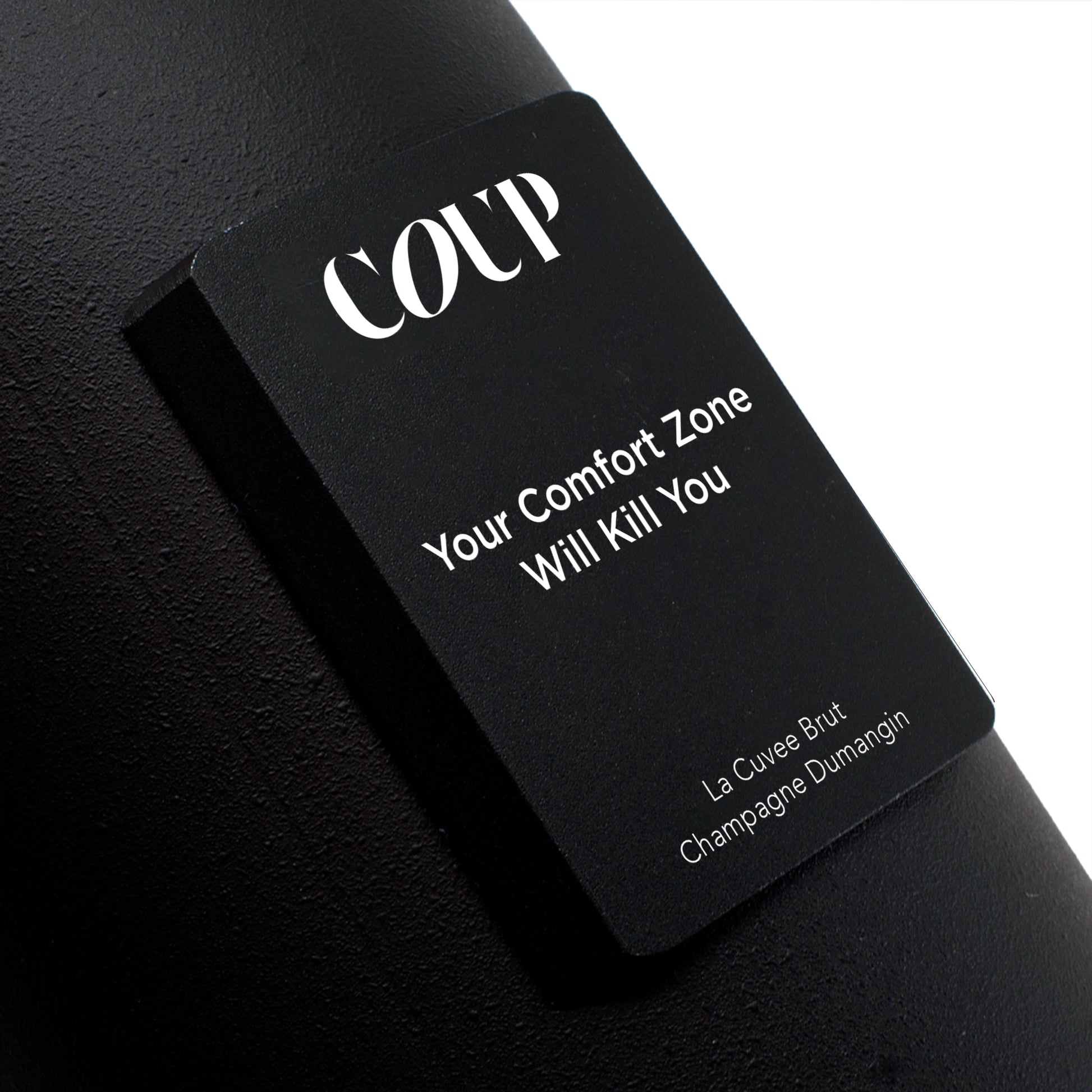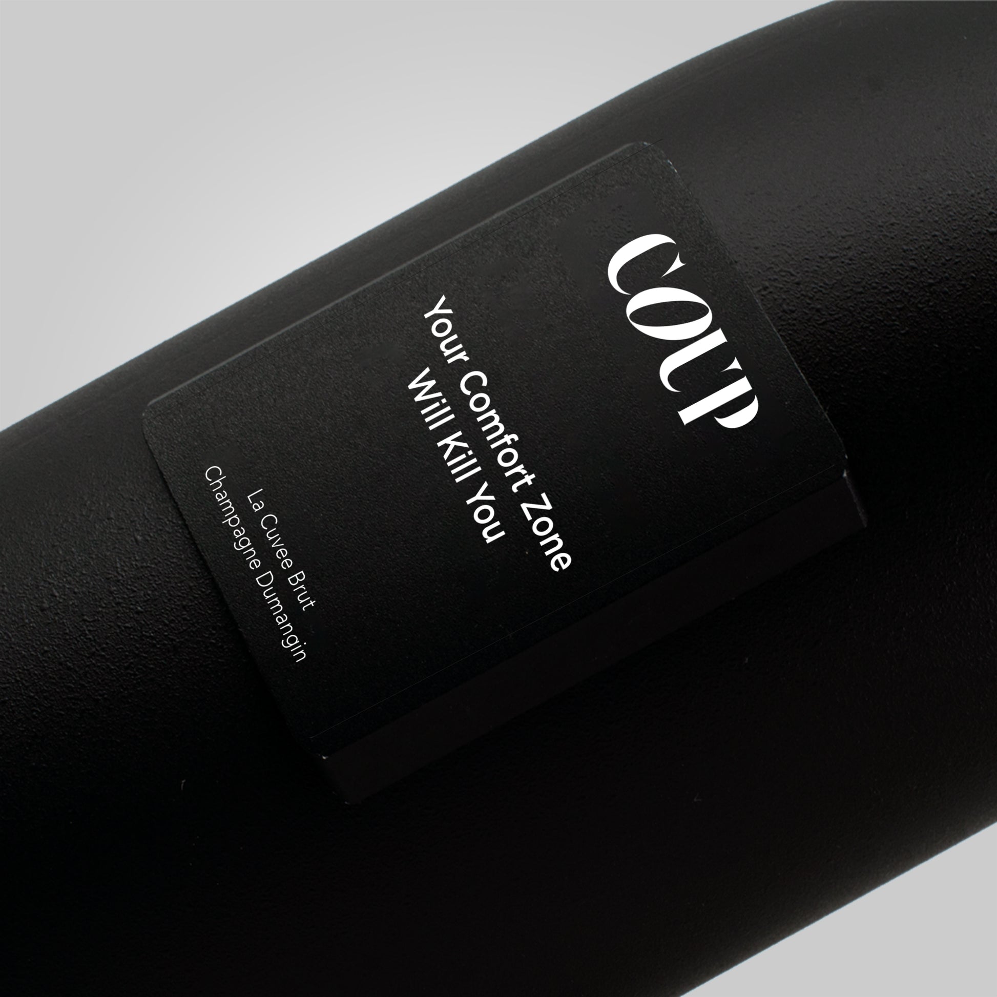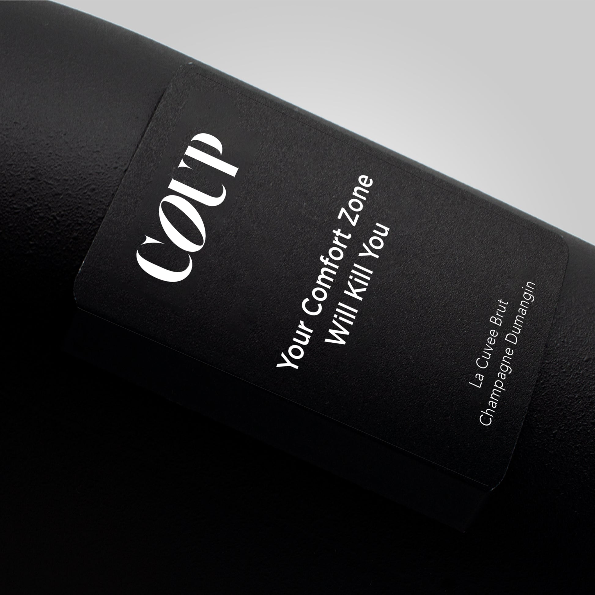 Laser-engraved black metal label. Hand painted matte black bottle.