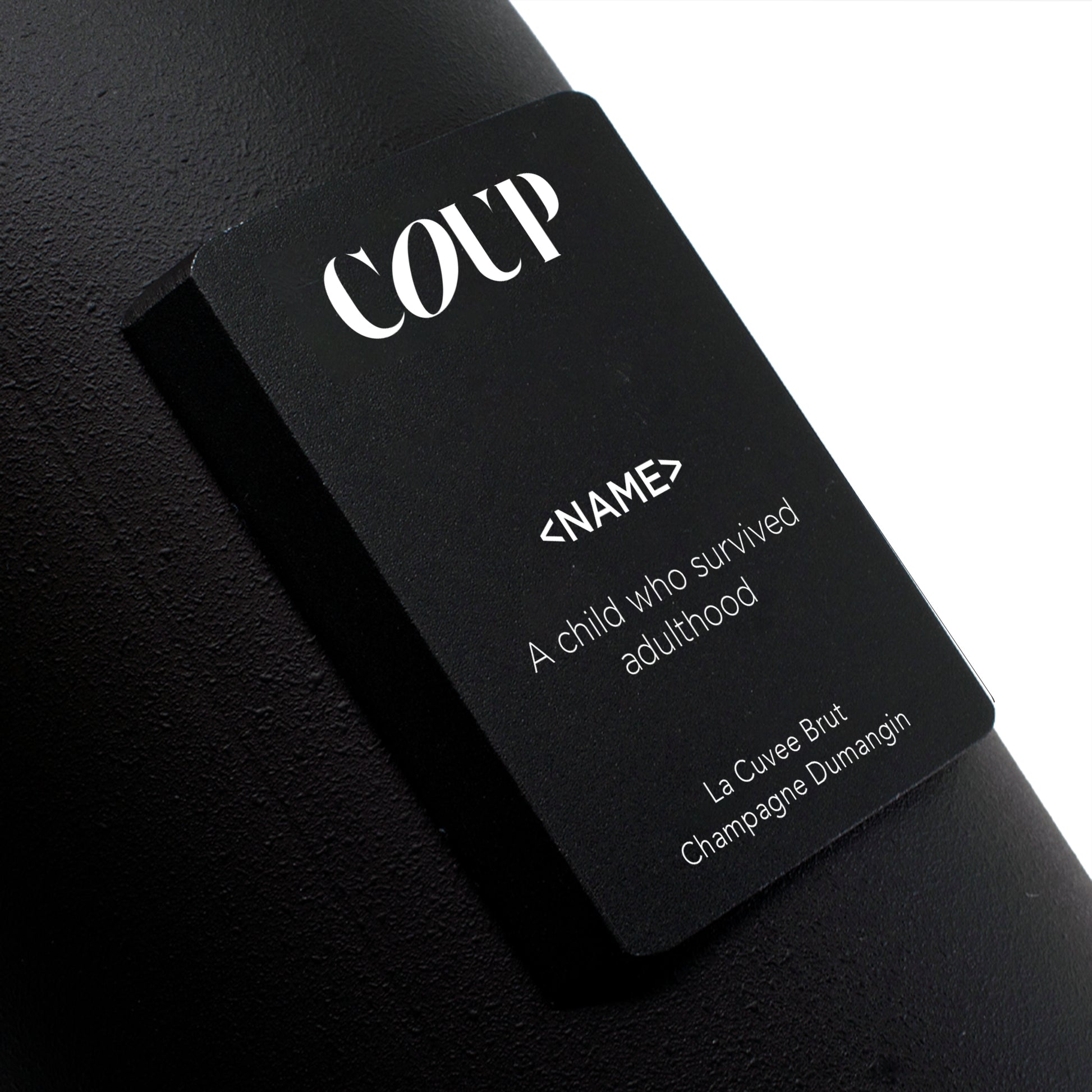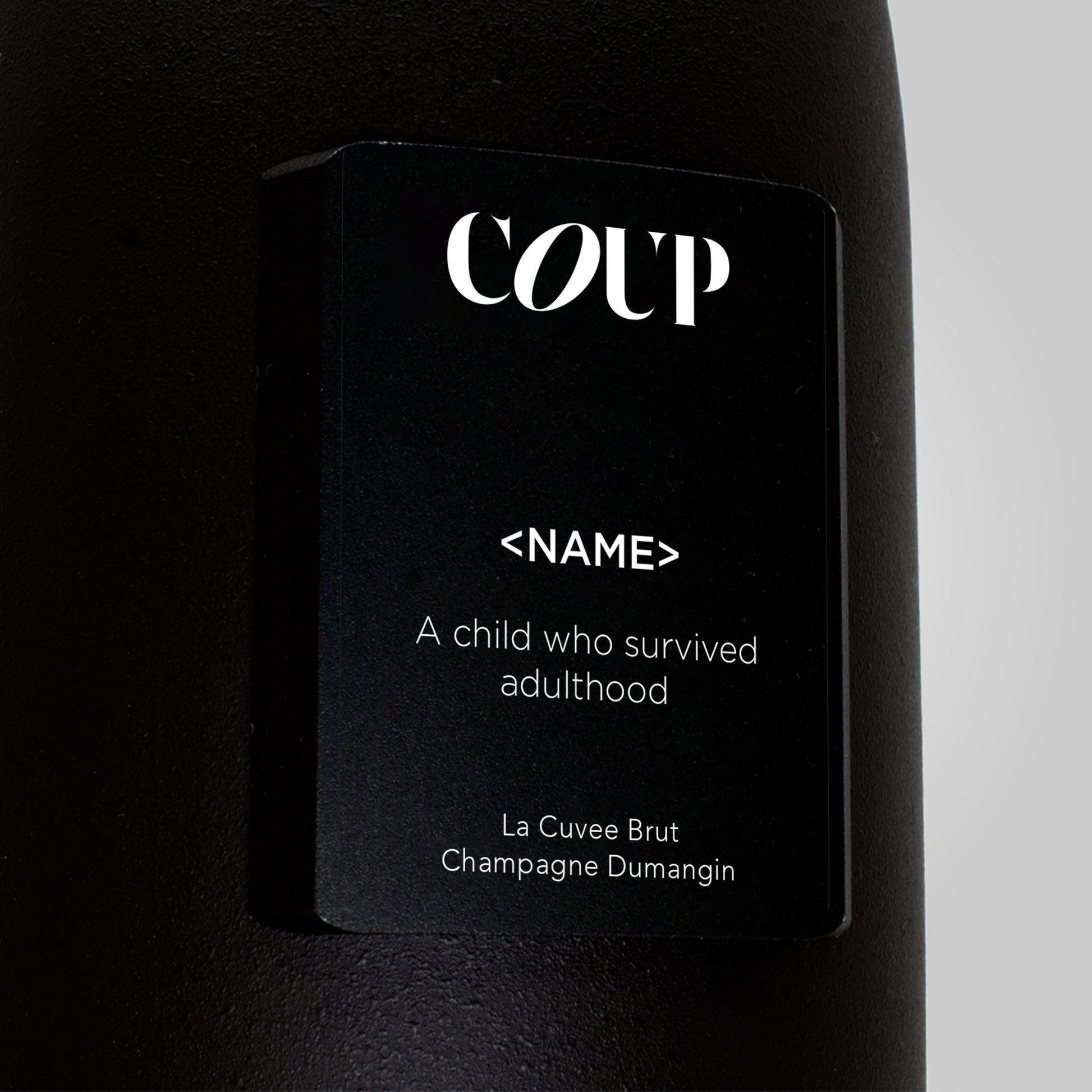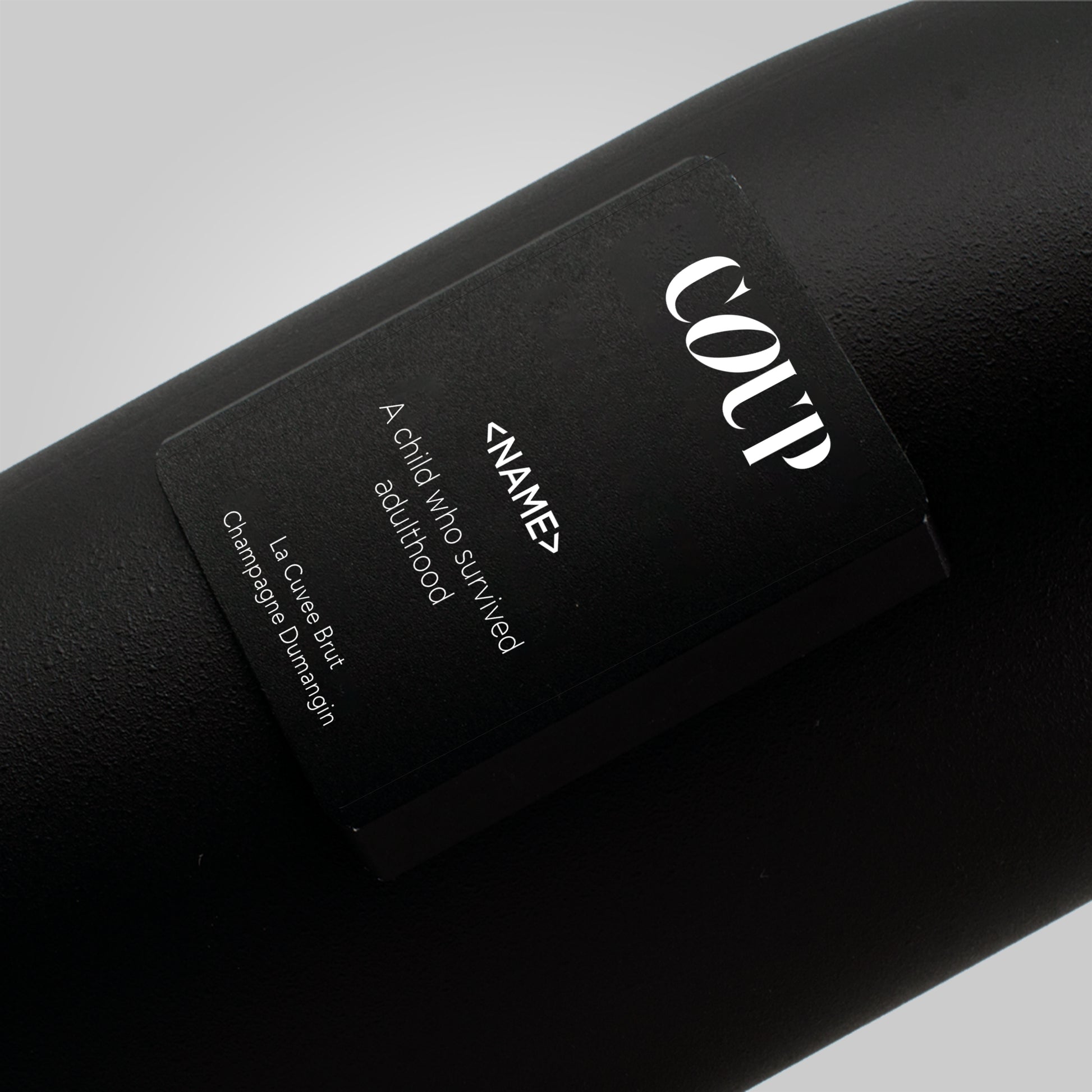 Laser-engraved black metal label. Hand painted matte black bottle.