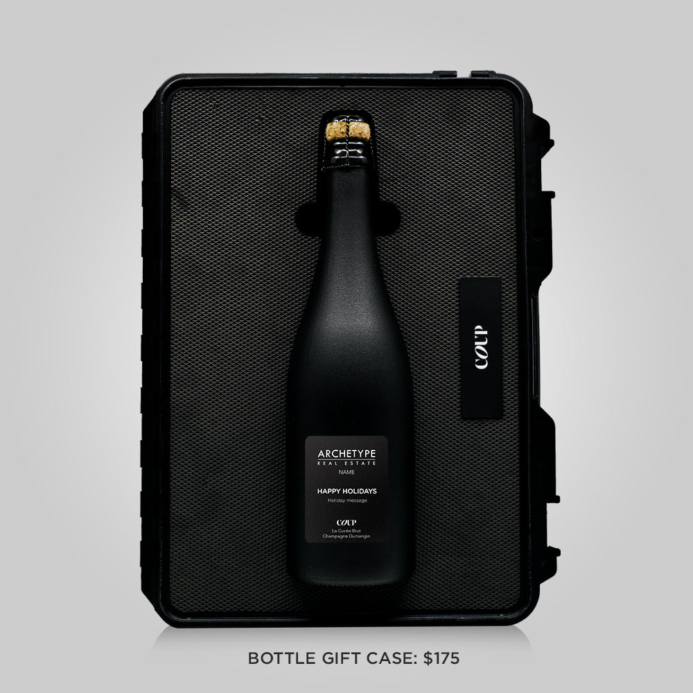 Laser-engraved black metal label. Hand painted matte black bottle.