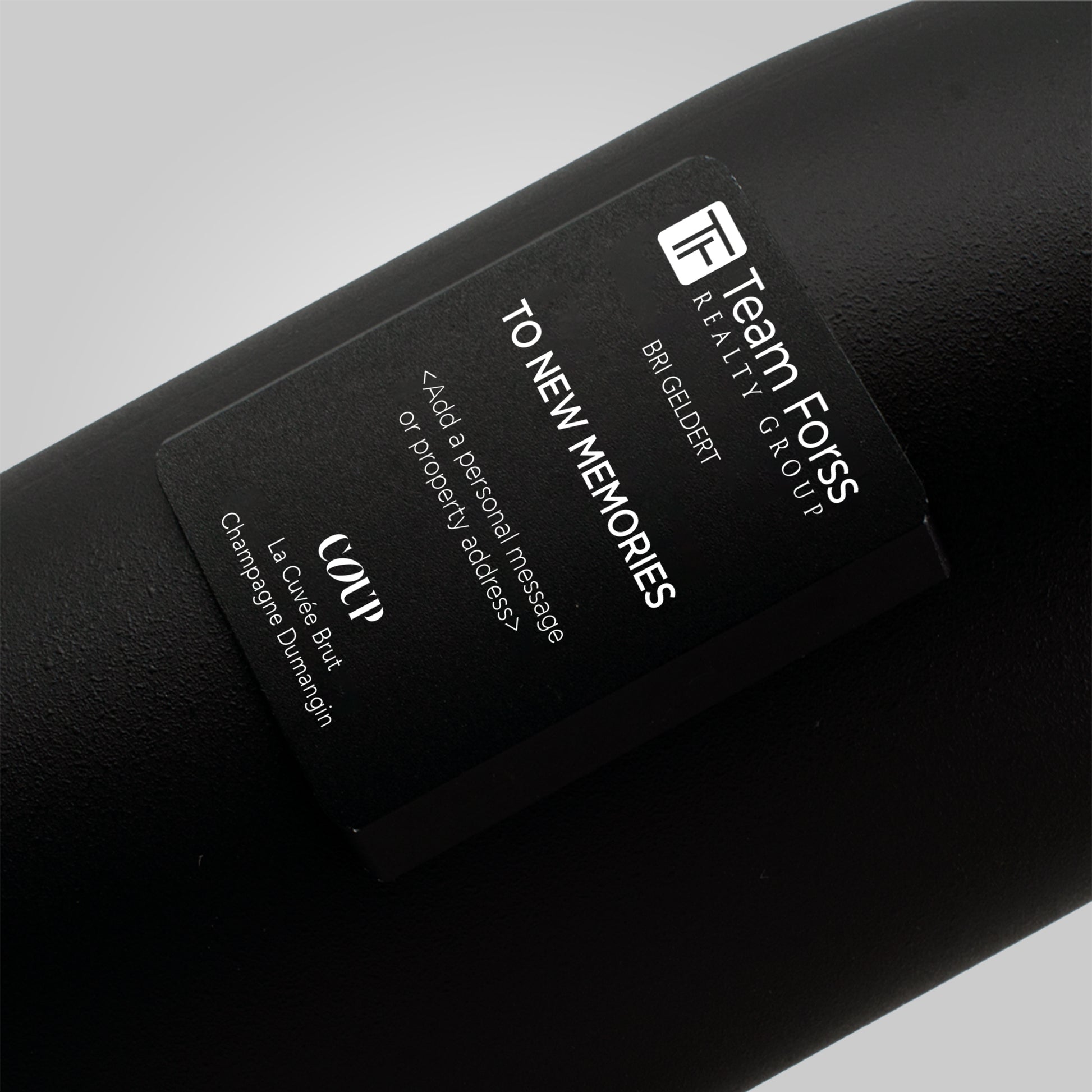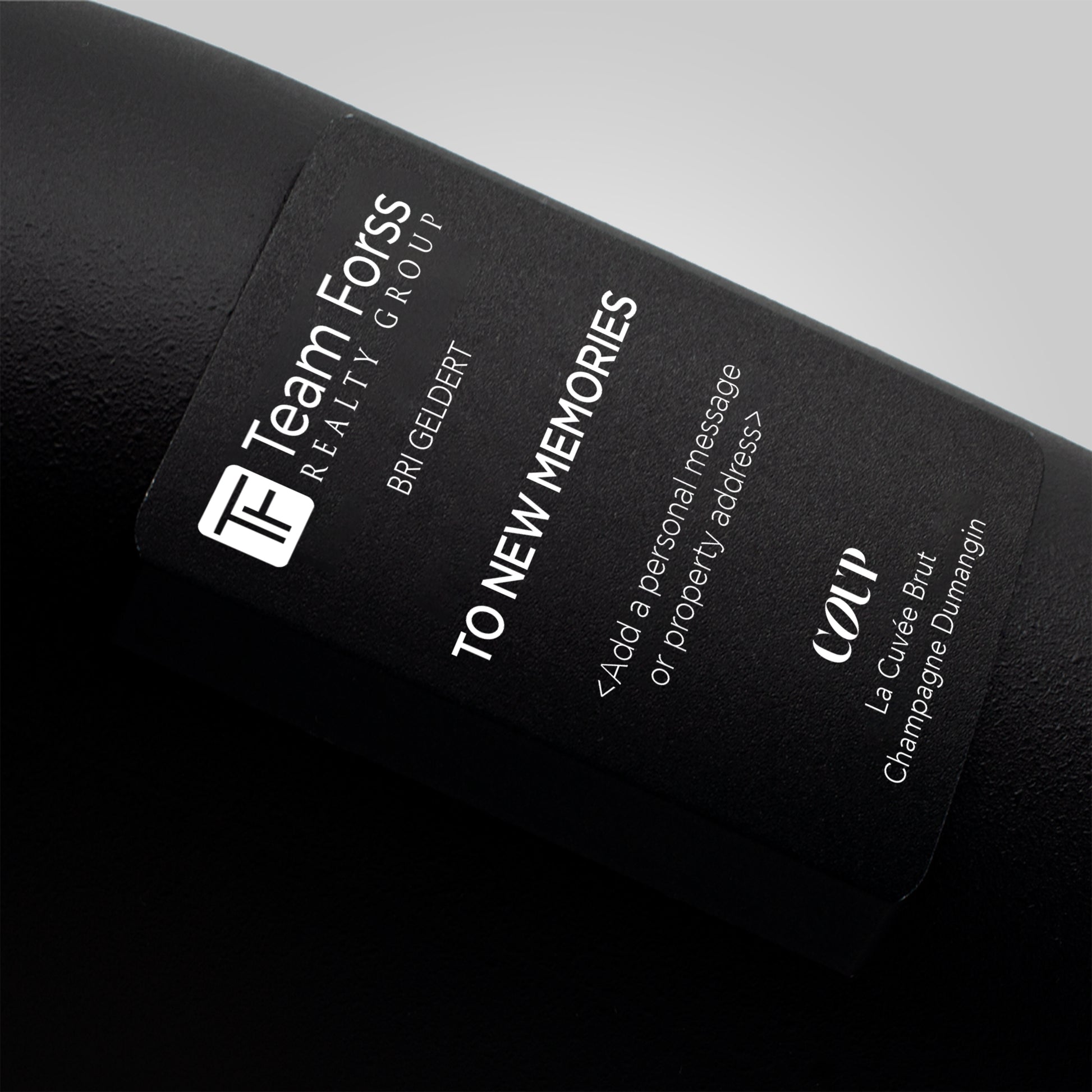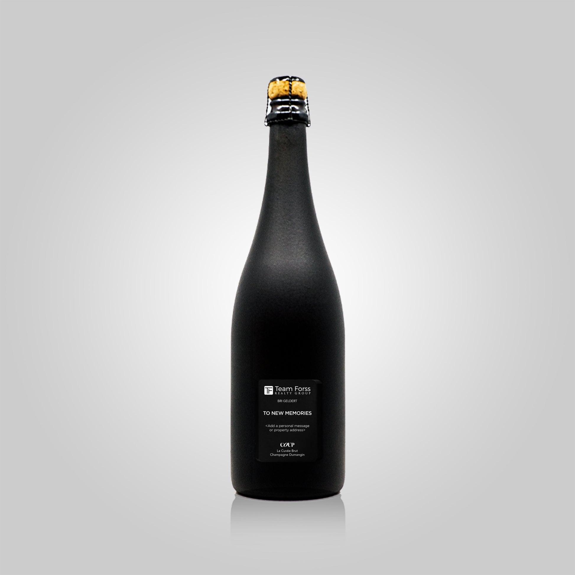Laser-engraved black metal label. Hand painted matte black bottle.