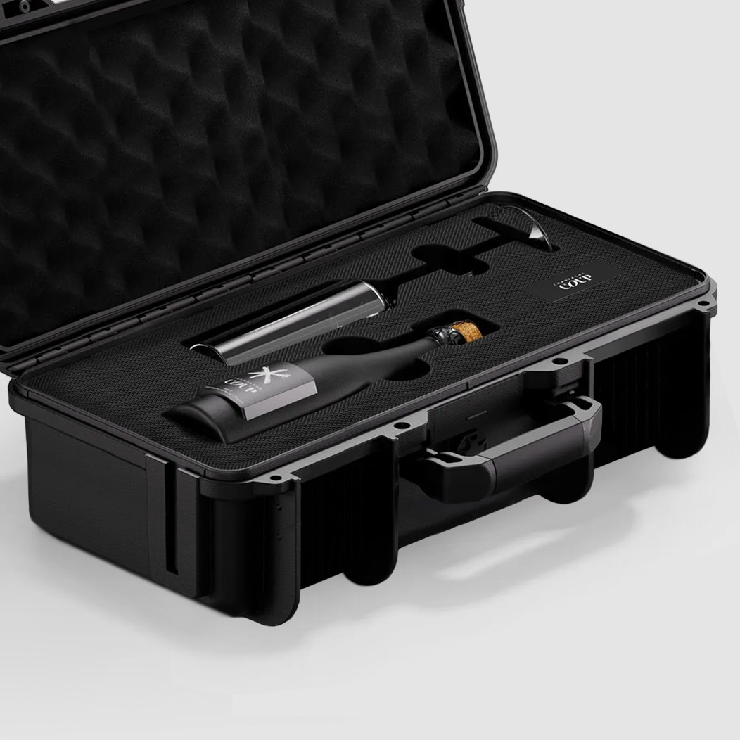 - Travel & storage case to conveniently carry and display COUP Champagne
