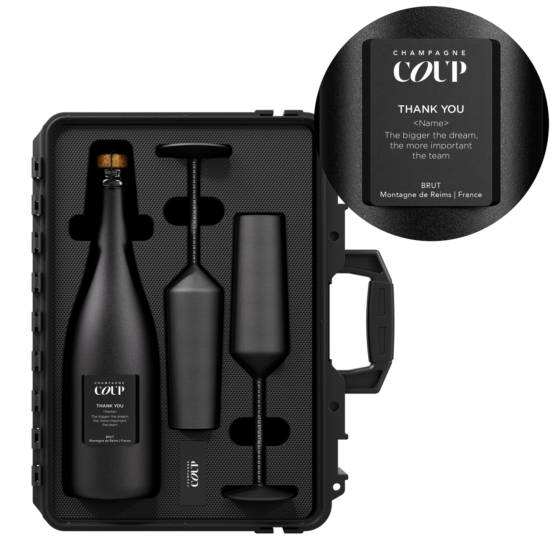 Choose your stage for a celebration that’s unmistakably yours. Whether you want the bold simplicity of a stand-alone bottle or you’re ready to up the ante with a case decked out with flutes and sabers, each option is a statement. Select the configuration that fuels your fire.